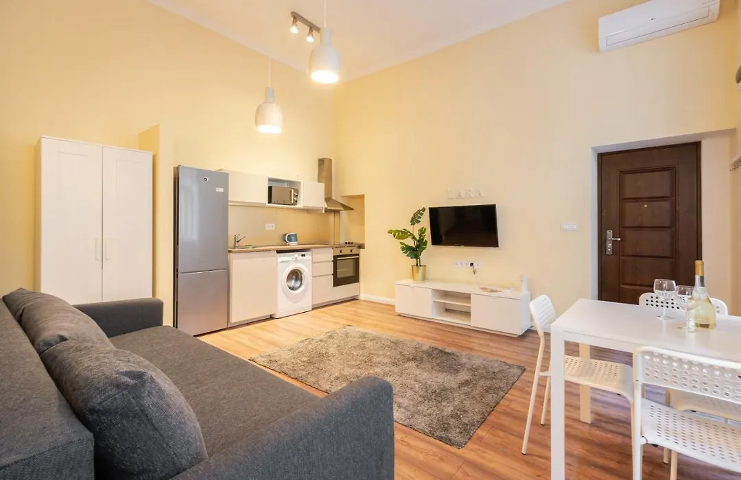 Dit appartement is voorzien van zelfvoorzienende faciliteiten, waaronder een keuken met een waterkoker en een koelkast. Nyugati treinstation is op 15 minuten lopen.